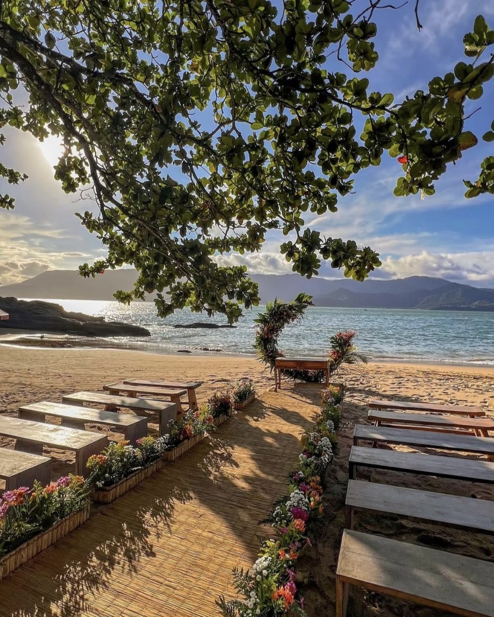 Os noivos convidam para recepção no dia 20 de novembro de 2025 no Loro Gastrobar em Ilhabela - Sp, a partir das 16:00, não vai perder né?! TRAJE: 1 peça branca🤍✨
